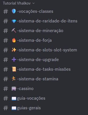 Olá caro aventureiro, você que é iniciante e não conhece os sistemas do Vhalkov, peço para que entre em nosso Discord, lá você irá encontrar guias e uma comunidade disposta a lhe ajudar!