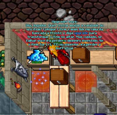 Processo: Coloque o item na bancada e fale com o NPC. Ele exigirá o item + 1,000,000 gold (1kk) para tentar a roletagem.
